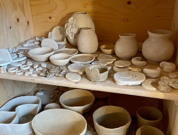 Making ceramics takes time and attention. You can't rush it. You come back several times: first to create a unique piece out of clay. After a drying process of several weeks, you glaze your work. And when it is finally fired, you come and pick it up (or I send it to you). We look back on the process: what did you make - and what did it bring you?